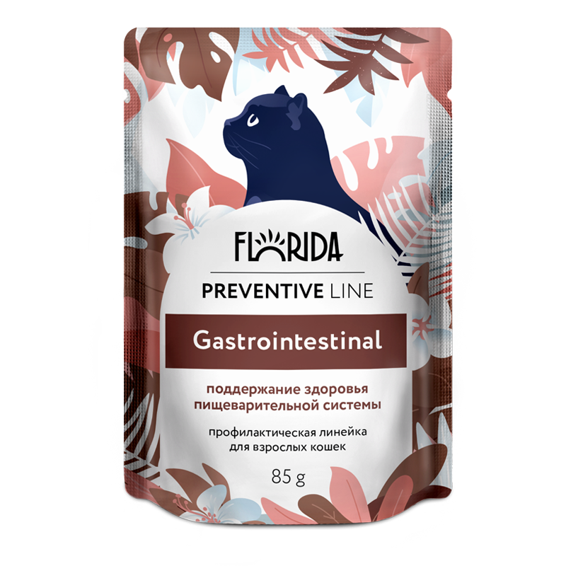 Влажный диетический корм для кошек Florida Preventive Line Gastrointestinal предназначен для профилактики заболеваний желудочно-кишечного тракта, обеспечивает бережный уход за пищеварительной системой вашей кошки. Сбалансированный состав поддерживает нормальную работу ЖКТ, способствует улучшению пищеварения и укреплению общего состояния здоровья.