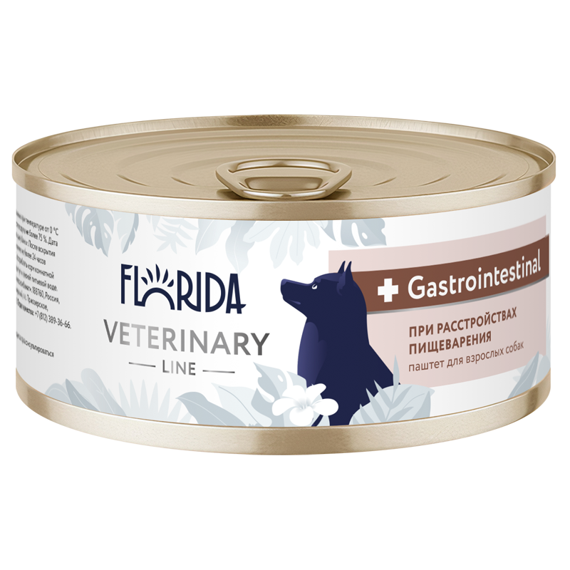 Диеты Florida Veterinary Line Gastrointestinal - диетический влажный корм, разработанный для собак с нарушениями пищеварения и всасывания в кишечнике.