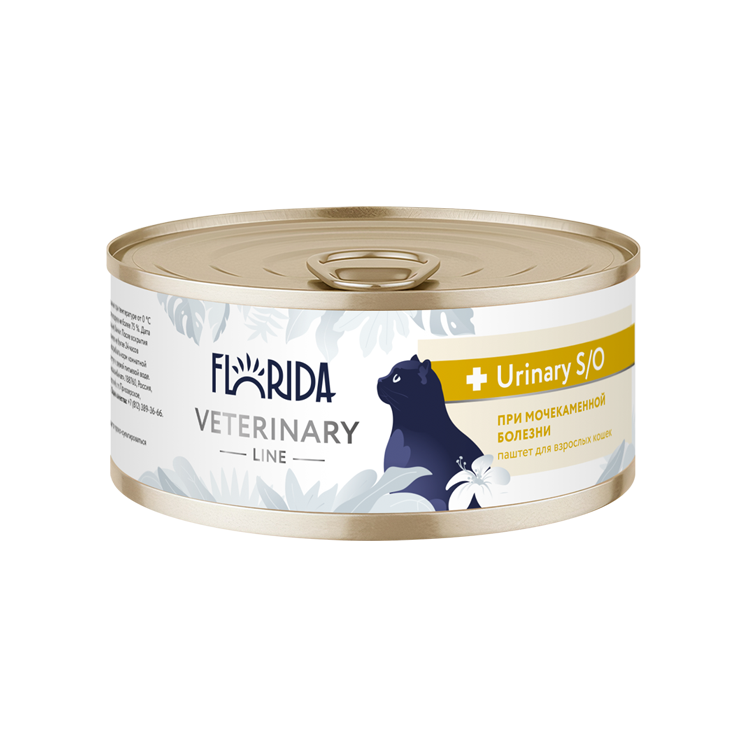 Диеты Florida Veterinary Line Urinary S/O диетический влажный корм для кошек, способствующий растворению струвитов и предотвращению их повторного образования.